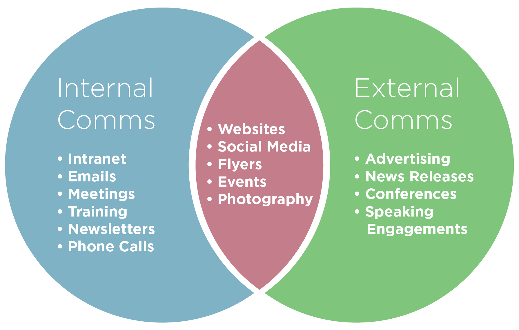 ومن الأخطاء التي تمارس في أقسام الاتصال المؤسسي والعلاقات العامة في القطاعات العامة والخاصة التركيز على الجمهور الخارجي وإهمال موظفيها. إذ لا يقل الاتصال الداخلي أهمية عن الاتصال الخارجي، فالموظفين هم سفراء المنظمة والعلامة التجارية، ولهم تأثير كبير في خلق الانطباع الجيد عن المنشاة. وتولي القطاعات والشركات أهمية للاتصال الداخلي لدوره في خلق الرضا الوظيفي عن المنشاة، وسياساتها والتفاعل والاندماج مع برامجها. فالموظفين هم سفراء المنظمة ولابد من الاهتمام باحتياجاتهم الفردية واحترامهم وقبولهم في بيئة العمل.